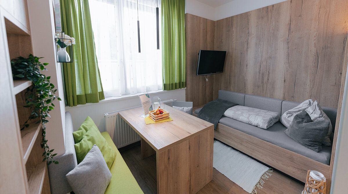 Du wohnst direkt vor Ort in einer unserer vier hochwertigen Lodges – modern eingerichtete Appartements, die dir eine komfortable Wohnmöglichkeit während deiner Rehabilitation bieten. Hier kannst du dich zurückziehen, entspannen und neue Kraft sammeln. Und natürlich auch den Ausblick auf Tirol genießen.
