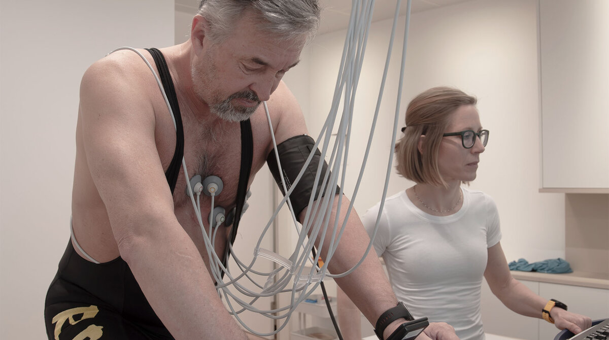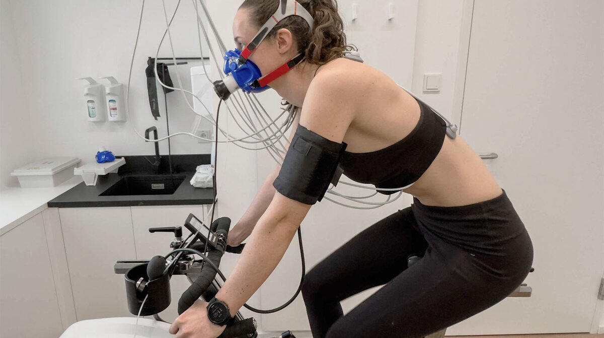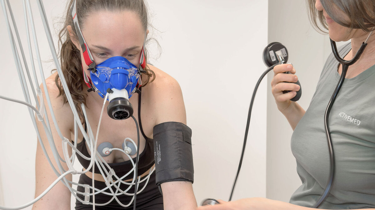- Spiroergometrie (Atemgasanalyse unter Belastung) zur Bestimmung von VO₂max, anaerober Schwelle und Herzfrequenzzonen